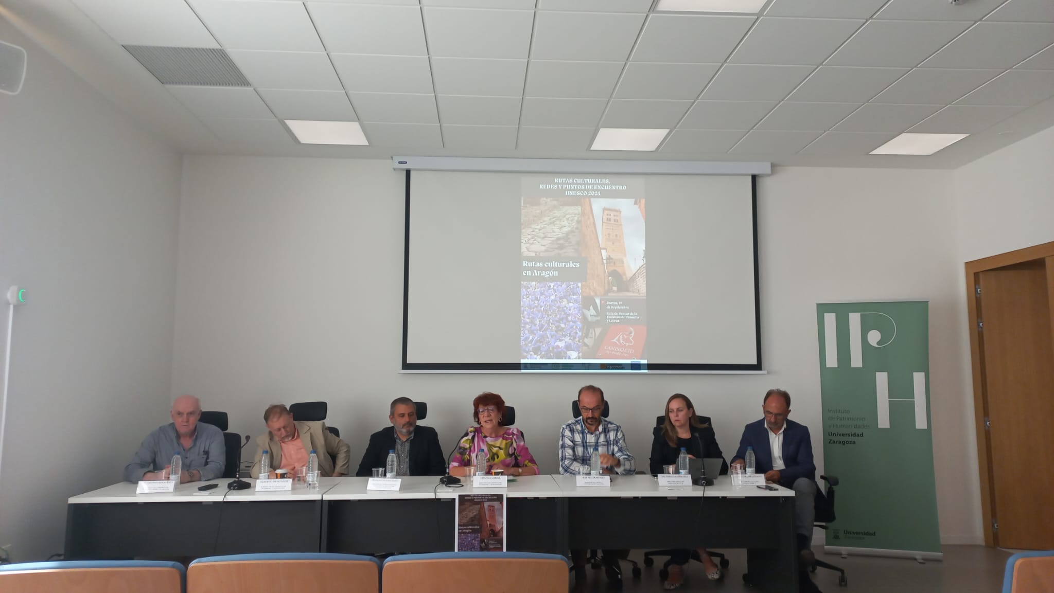 At the meeting held today, the director of Territorio Mudéjar, Victoria Trasobares, took part in the round table discussion “Routes as a heritage management system” moderated by the director of the IPH Concha Lomba and together with Juan Carlos Lozano, Director of the Gonzalo Borrás Chair; Pedro Luis Hernando, Director of the Centro de Estudios Mudéjares del Instituto de Estudios Turolenses, José Antonio Benavente, Manager of the Consorcio Patrimonio Ibérico de Aragón; Alberto Montaner, Professor at the University of Zaragoza and Rafael Antonio Domingo, Professor at the University of Zaragoza.