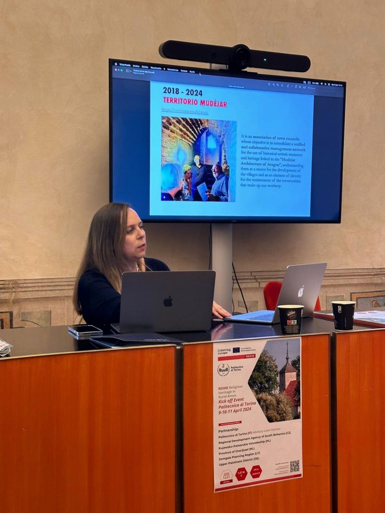 The director of Territorio Mudéjar, Victoria Trasobares, participated from 9 to 11 April in Turin (Italy) in the European technical meeting for the study of management plans:Religious Heritage in Rural Areas (REliHE Interreg Europe Project). There, different European models were studied that can contribute to the preliminary study for the elaboration of the management plan for Mudejar Architecture in Aragon*.