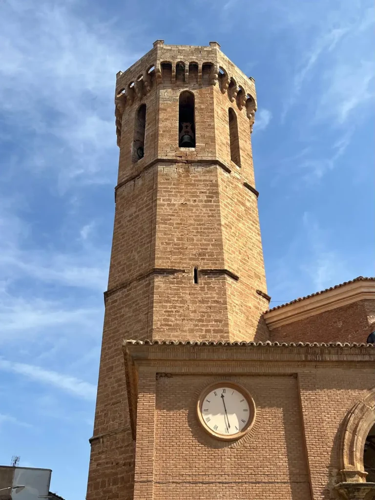 La Parroquia de la Asunción de Nuestra Señora es un claro ejemplo de cómo la arquitectura mudéjar se adaptaba a las necesidades históricas del momento. Su imponente torre mudéjar original fue sustituida por la actual, de carácter defensivo, para protegerse de los continuos ataques castellanos en la Guerra de los Dos Pedros. Este hecho (poco habitual en el arte aragonés, pero común en las zonas de Levante) convierte a la iglesia en un testimonio único de ¡l siglo XIV, un período en el que incluso los templos religiosos debían fortificarse. Así, la parroquia no solo nos habla de un rico pasado artístico, sino también de la compleja realidad política y militar que marcó la historia de la villa.