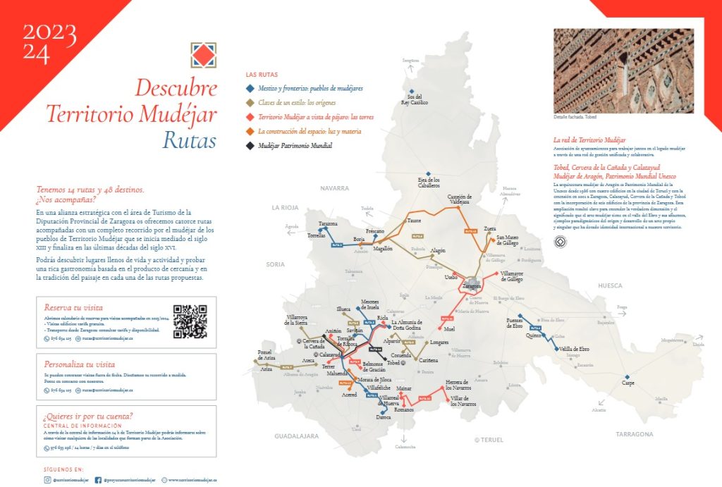El primer paquete de rutas “Pueblos Territorio Mudéjar” continúa con la esencia de las anteriores ediciones con 15 itinerarios por la provincia de Zaragoza, guiados por especialistas en patrimonio y organizados en cinco temáticas: