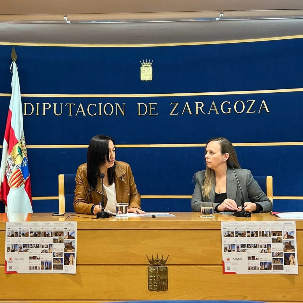 La diputada delegada de Turismo de la Diputación de Zaragoza, Cristina Palacín, y la directora de Territorio Mudéjar, Victoria Trasobares, han presentado esta mañana el proyecto.